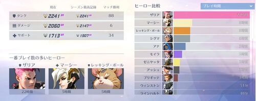 シーズン24においてシルバー・ゴールド帯では以下のタンク編成をよく見る. ハルト・ザリア ロードホッグ・ザリア D.Va・ザリア ウィンストン・ザリア 当たり前だが,これらさえピックしていれば勝てるという保証は全くない.2盾時代はオリシグ以外にほとん…